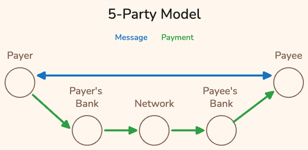 This post added to the 2-, 3-, and 5-party models by splitting the payment into two parts: a message and a transfer. We saw how float, the delay between message and transfer, can impact different parties. You now have the language to describe float, and there’s so much more to get into — things like bridge financing, EFTA Reg E, and message authorization. These are all stories for another time.