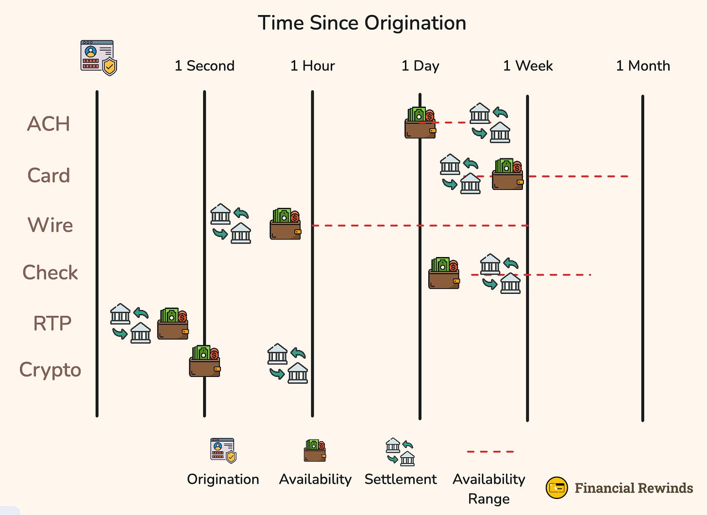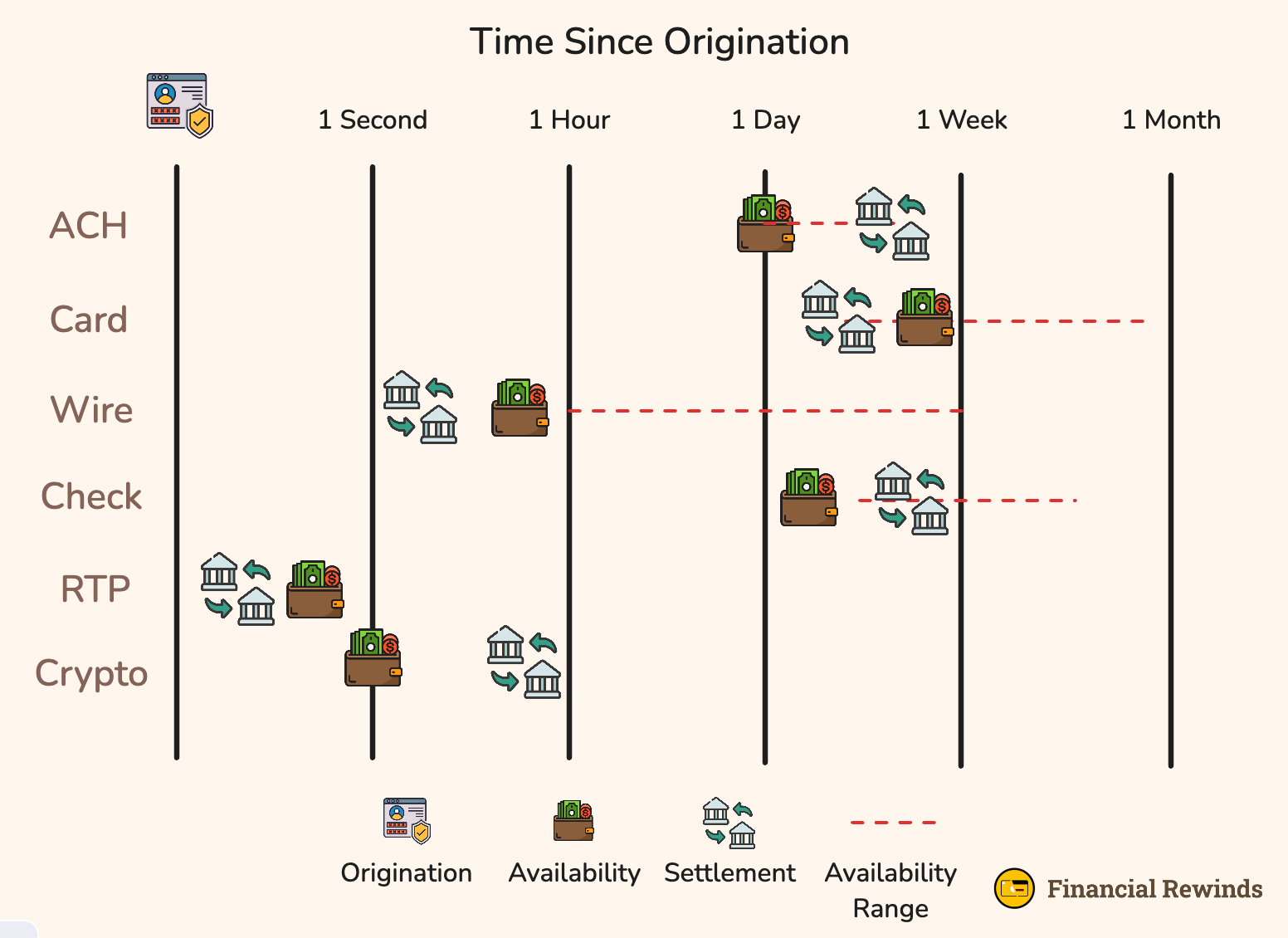 It’s common to have funds settled (be finalized) before they’re made available for spending. There are structural reasons — like the rail settling in near real-time, eliminating the need for advancing funds — but mostly, it’s a matter of risk management. Taking on unnecessary counterparty risk without compensation is bad business.