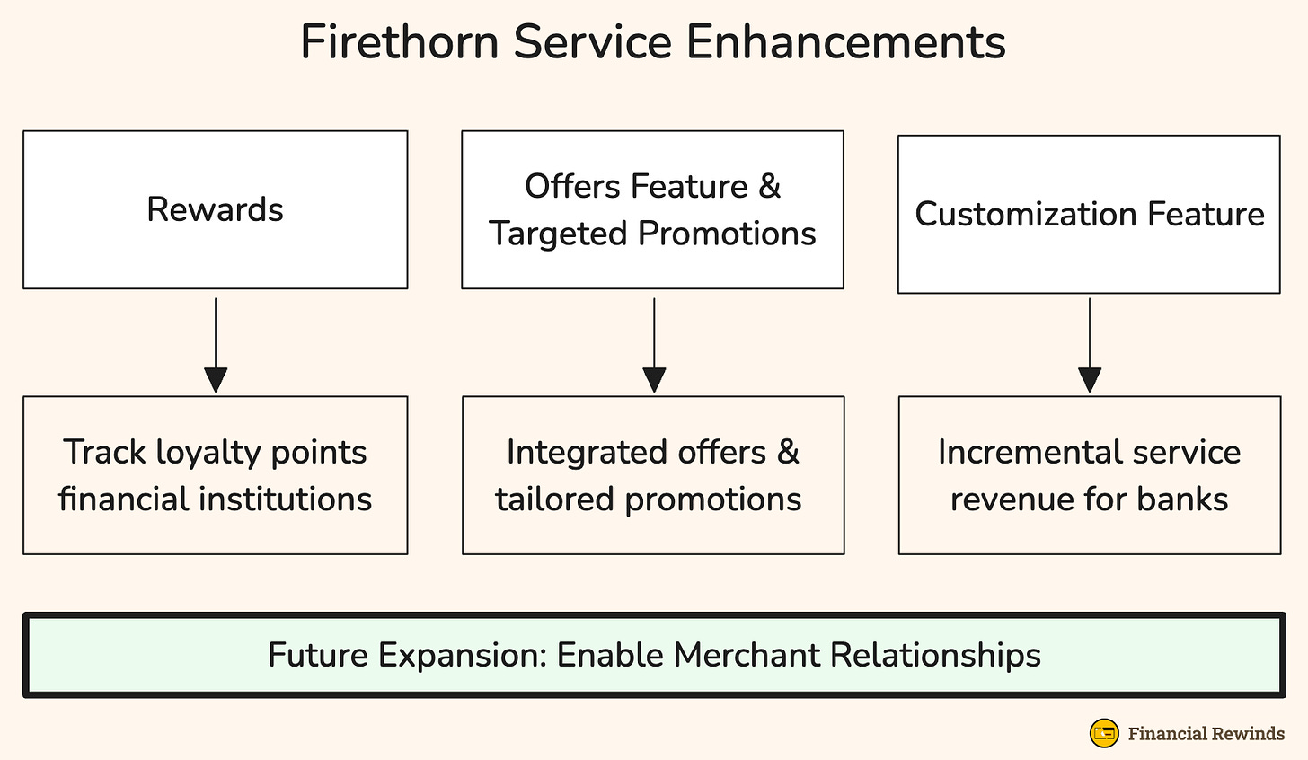 A year after the acquisition and 4 months after the App Store was released, Firethorn announced a wave of new features — loyalty, rewards, personalized offers, geofencing ads — all in a bid to move from banking utility to mobile commerce engine.