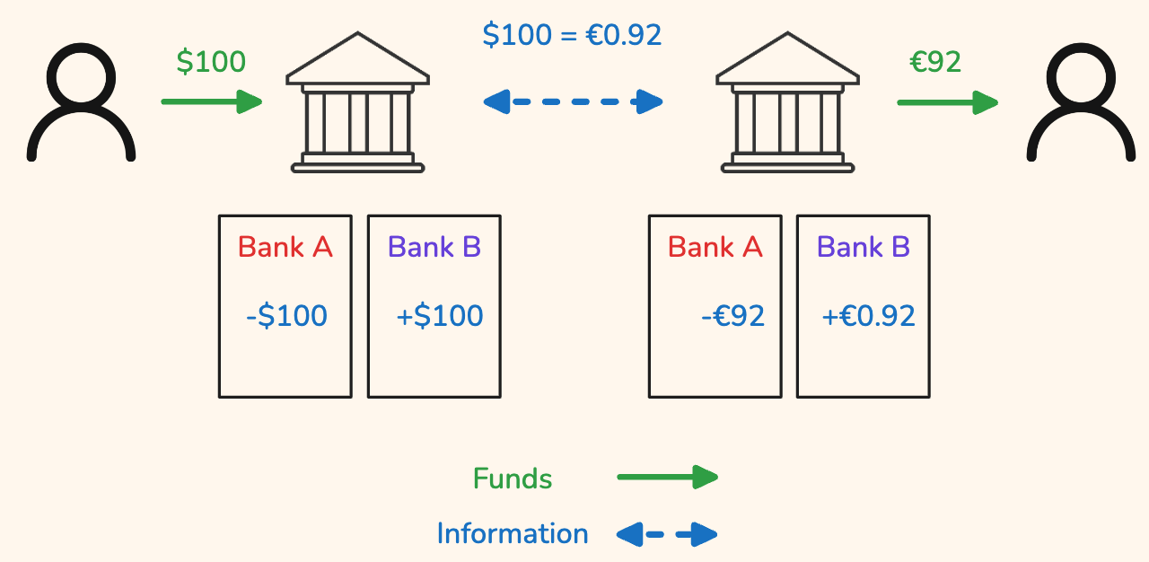 The real innovation in moving funds within the crypto ecosystem has been “cross-chain” transactions. These transactions allow value in one network (e.g. USDC, a USD stablecoin) to be transferred to another network (e.g. ERUC, a EUR stablecoin). It’s a similar process for getting funds in and out of the network.